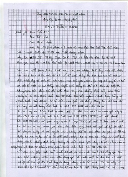 | Bản tường trình của thí sinh Thòng Coọc Dinh |