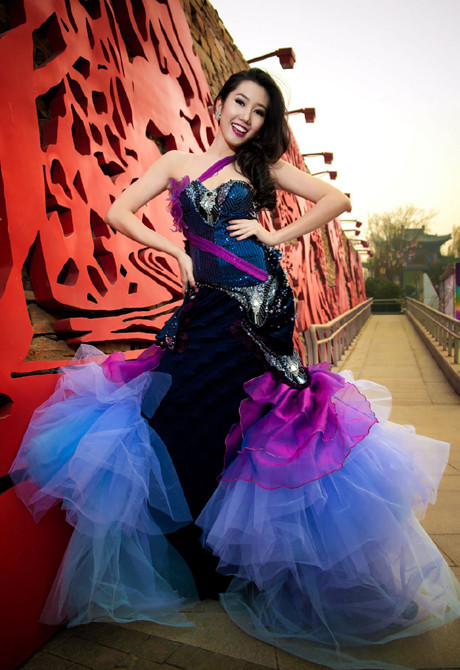 | Thúy Ngân lộng lẫy với trang phục dạ hội tại cuộc thi Nữ hoàng Du lịch Quốc tế đang diễn ra tại Trung Quốc. |