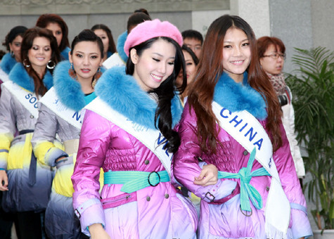 | Thúy Ngân và các thí sinh Nữ hoàng Du lịch Quốc tế thăm thú các thắng cảnh tại TQ. |