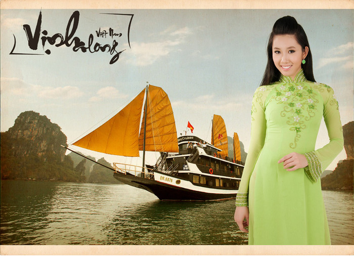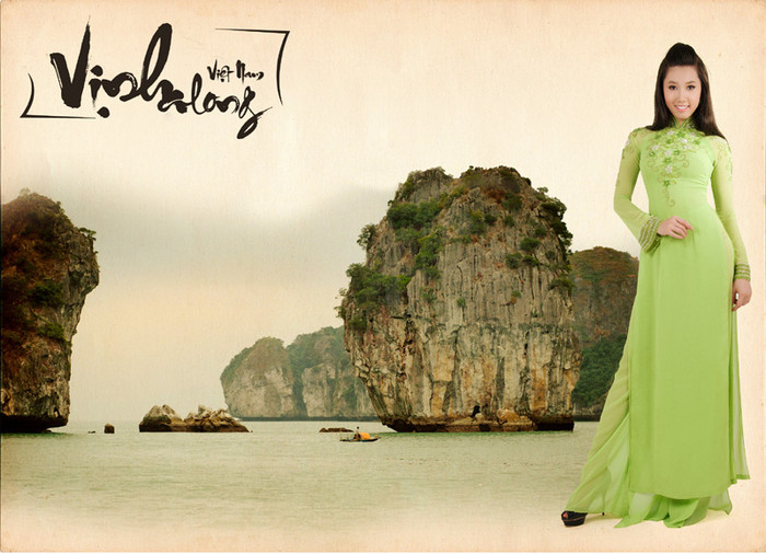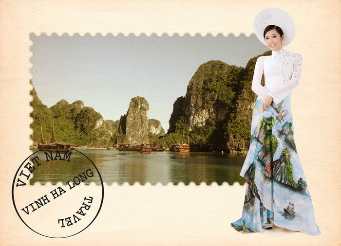 | Bộ ảnh khiến người xem có cảm giác được nhìn tận mắt một con tem lớn về Vịnh Hạ Long, bên cạnh hình ảnh trong sáng, thướt tha của Thúy Ngân. |