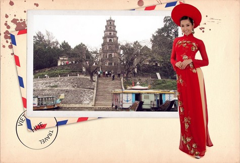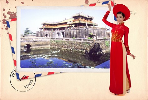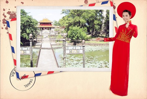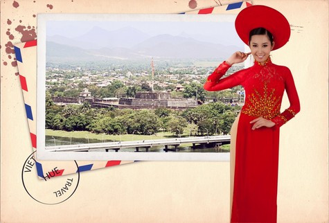 Hãy ngắm lại nhan sắc của Thúy Ngân qua bộ post card góp phần làm nện thành công, trong tà áo dài nền nã, bên cạnh những thắng cảnh của cố đô Huế:
