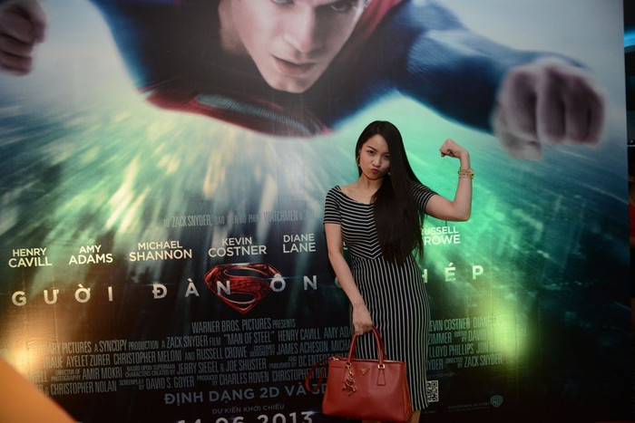 Mặc bộ váy kẻ “kín cổng cao tường”, Thủy Top xuất hiện khá giản dị. Khi thấy các ống kính phóng viên hướng về mình, cô nàng hot girl vui vẻ tạo dáng nhí nhảnh.
