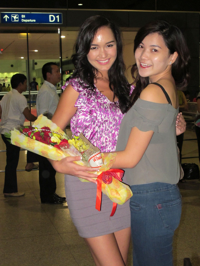 | Thúy Vy và siêu mẫu Thúy Hạnh - đại diện Elite VN, đơn vị tổ chức cho Thúy Vy đi thi. |