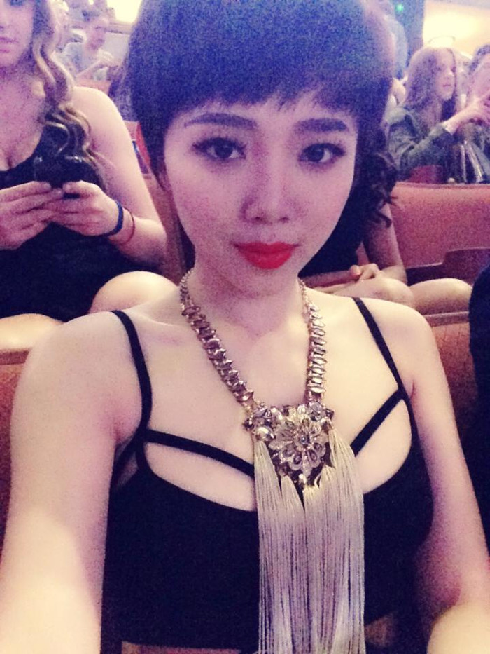 Để chuẩn bị đi xem show diễn này, Tóc Tiên đã học Miley phong cách ăn mặc sexy, nổi loạn. Cô diện bộ đồ bó sát cơ thể nhưng lại để lộ cả khoảng lưng trần gợi cảm cùng vòng một căng đầy qua chiếc áo hai dây.