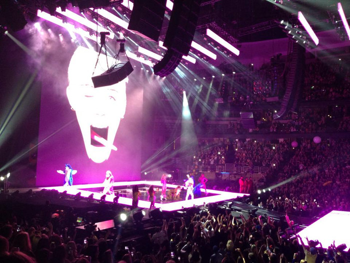 Tóc Tiên đã rất hạnh phúc khi được có mặt trên hàng ghế khán giả để xem show trình diễn của ca sĩ nổi tiếng Miley Cyrus.