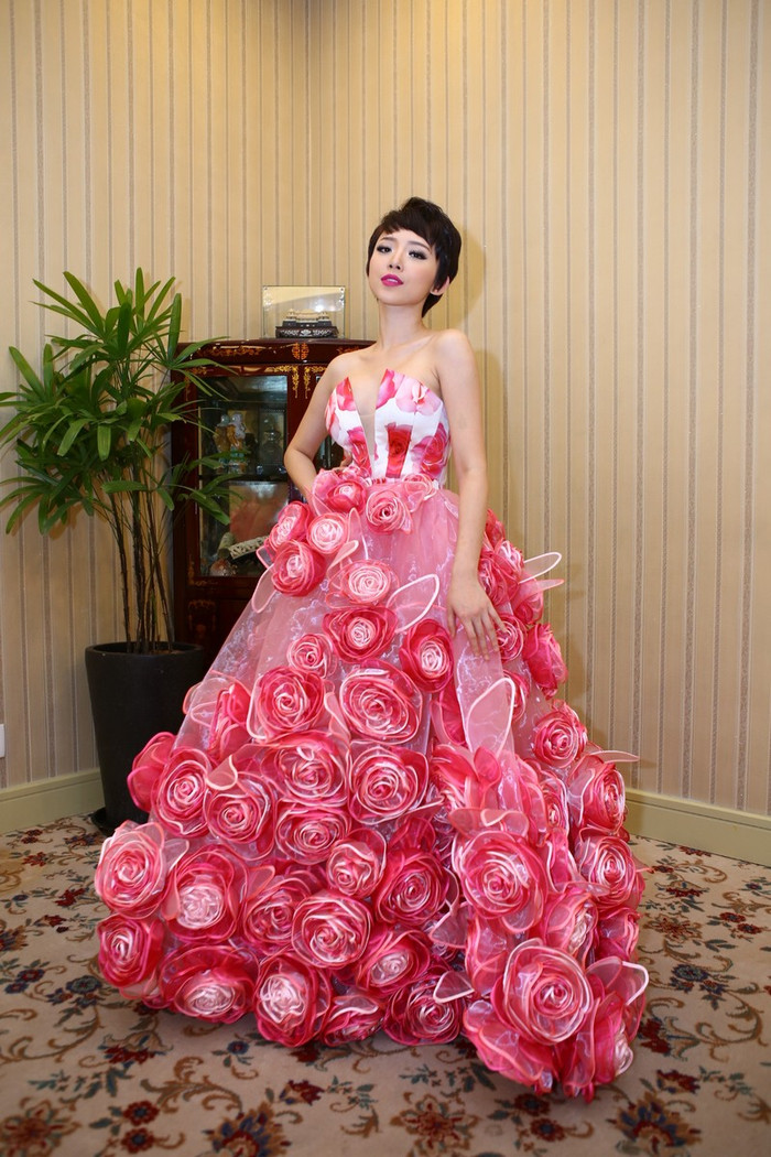 | NTK Nguyễn Công Trí đã chuẩn bị riêng cho Tóc Tiên một bộ đầm đầy ấn tượng được thiết kế lấy cảm hứng từ hoa hồng. |