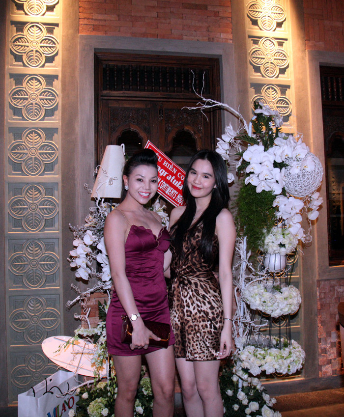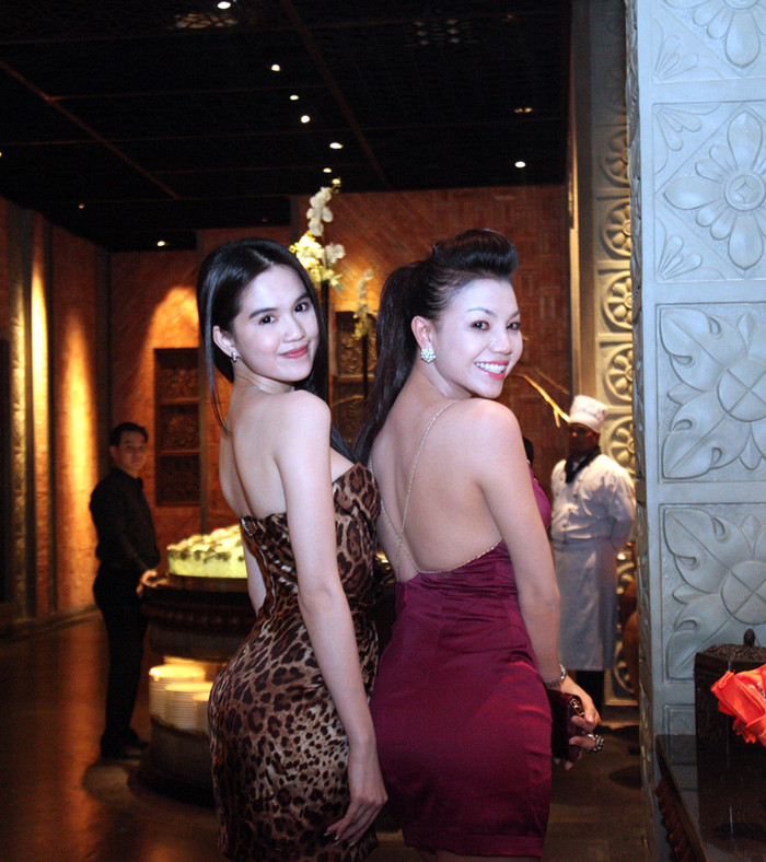 | Ngọc Hằng và Ngọc Trinh hết sức thân thiết, trong buổi tiệc "dính" nhau như hình với bóng. |