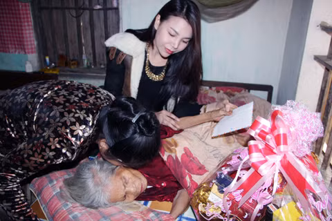 | Trà Ngọc Hằng gửi tặng một chút tấm lòng để gia đình chăm lo cho cụ Cầu được tốt hơn. |