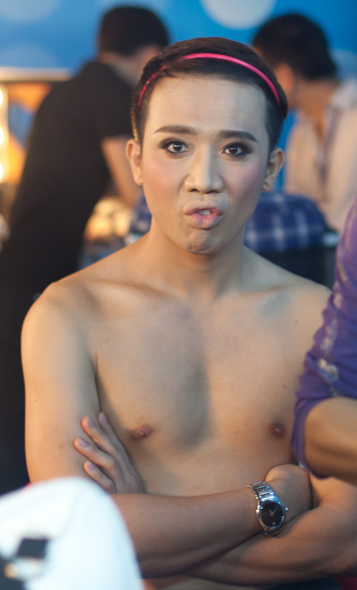 | Trong phòng hóa trang, ngay cả đến MC Thanh Bạch cũng phải há hốc mồm ngạc nhiên trước vẻ quyến rũ, đài các và xinh đẹp của MC đàn em. |