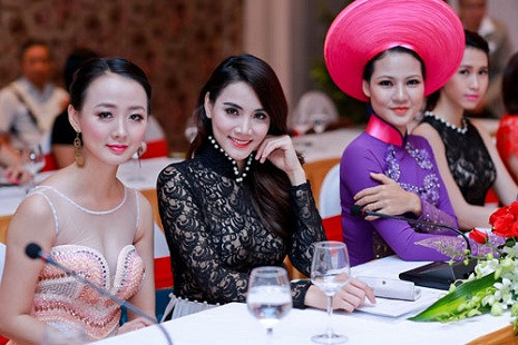 | Ngoài Hoa hậu thể thao, trong buổi họp báo này còn có người mẫu Trang Nhung (bên trái). |