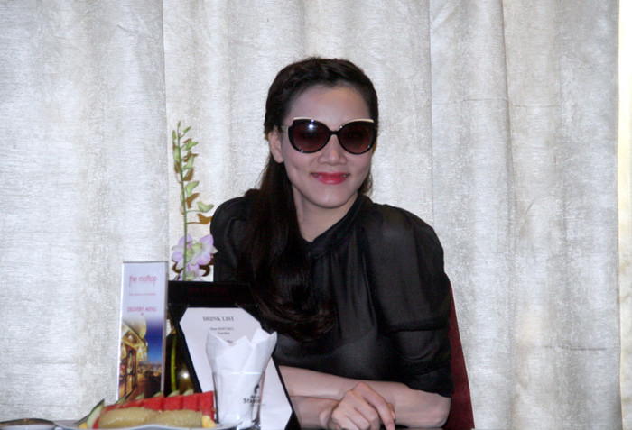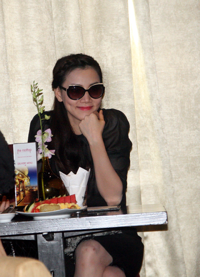 | Cô tranh thủ tạo dáng trước giờ họp báo. |