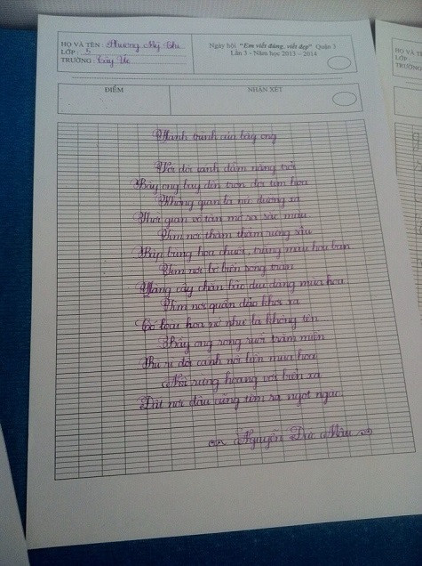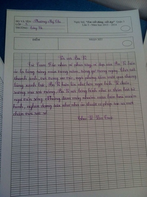 Một độc giả có tên Việt Quân góp ý: "Chắc chắn là em Phương Mỹ Chi viết sai rồi, mọi người thử nhìn chữ ghi tên tác giả là Thi cùng tên của bé Chi xem cả hai chữ T và C cùng viết giống hệt nhau còn gì".