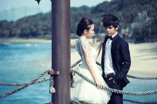 "Bạn trai" của nữ diễn viên Mùi ngò gai trong bộ ảnh này cũng là một cái tên không xa lạ - Sơn Ngọc Minh. Trong số bốn thành viên của nhóm V.Music, Sơn Ngọc Minh sở hữu một lượng fan khá lớn nhờ vẻ ngoài điển trai, nam tính và khả năng diễn xuất không thua kém gì những diễn viên nam hiện tại.