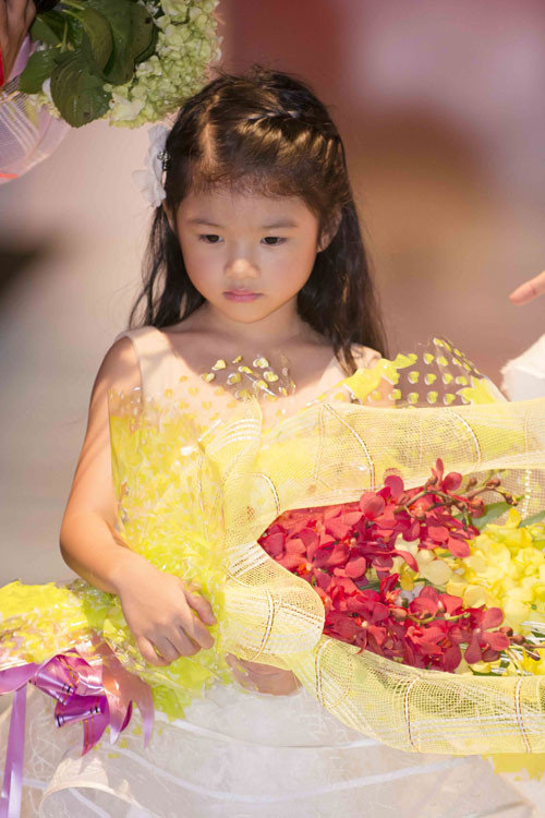 Trương Ngọc Ánh và bé Bảo Tiên đã gây bất ngờ với khán giả khi cùng trình diễn trên sân khấu với vai trò người mẫu. Cô con gái 6 tuổi của Trương Ngọc Ánh đã sải những bước chân chuyên nghiệp như người mẫu thực thụ, trình diễn tự tin cùng mẹ.