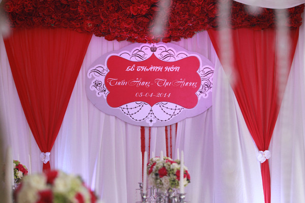 Khác với lần ăn hỏi, trong ngày thành hôn, nhà chú rể lấy tông màu đỏ làm chủ đạo, còn nhà cô dâu chọn tông màu tím.