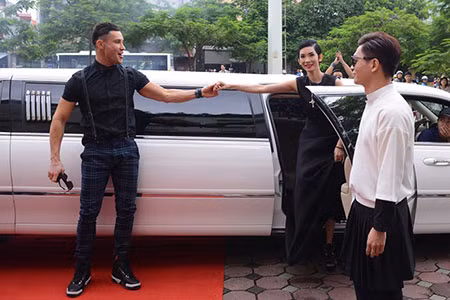 | Bốn vị giám khảo bước ra từ chiếc Limousine 4 cửa sang trọng. |