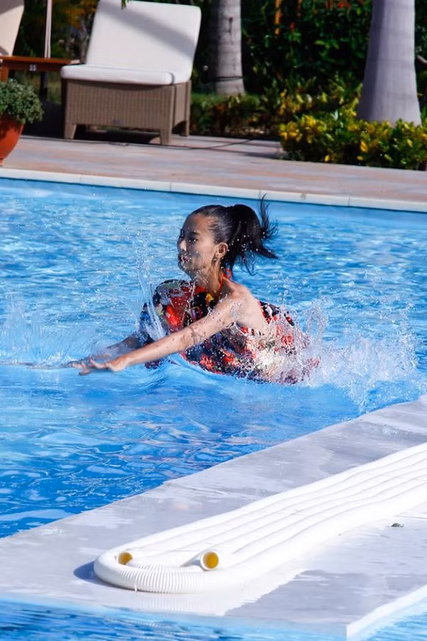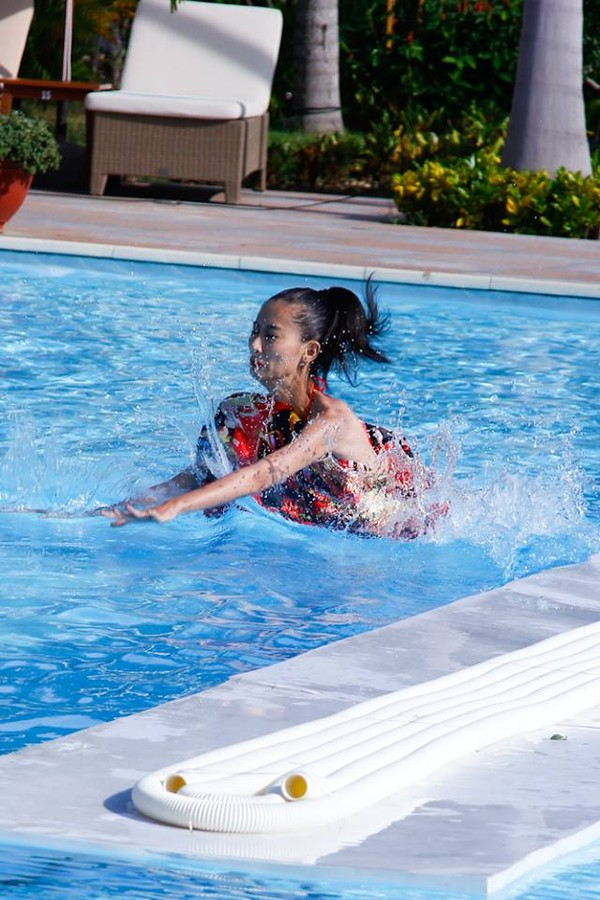 | Các thí sinh tạo dáng trên phao |