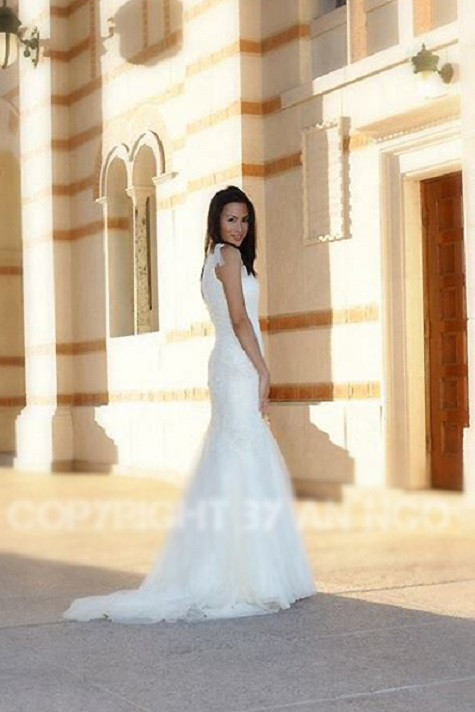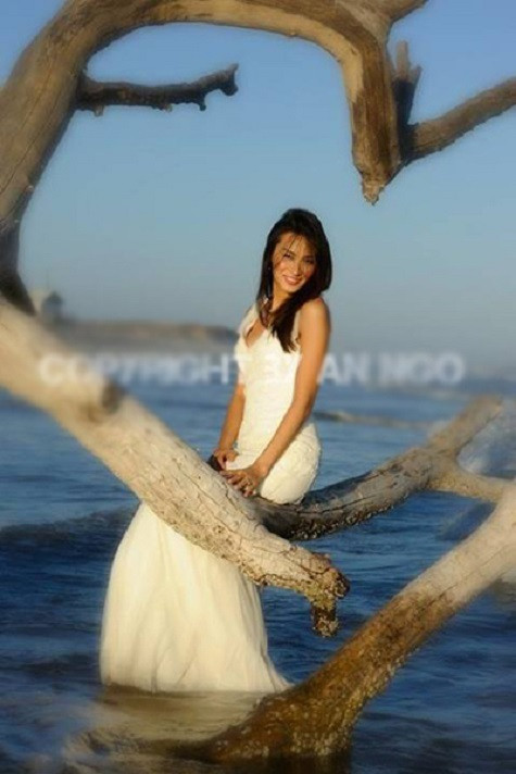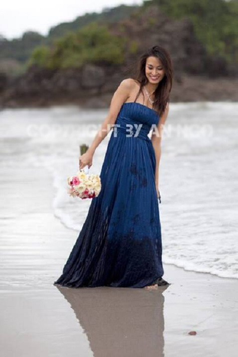| Bức ảnh mặc váy cưới của Ngô Ý An trên bãi biển |