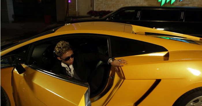 | Chưa rõ chất lượng sản phẩm âm nhạc ra sao, nhưng có vẻ chủ nhân đầu tư rất hoành tráng, sử dụng cả siêu xe lẫn không gian mờ ảo của một quán bar trên đường Trần Khánh Dư. |