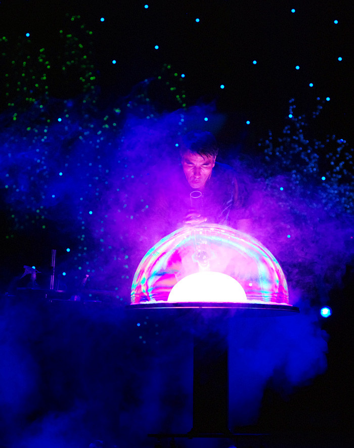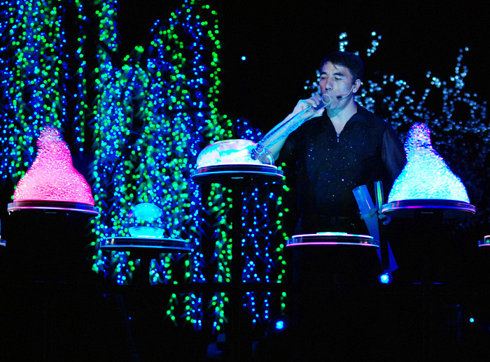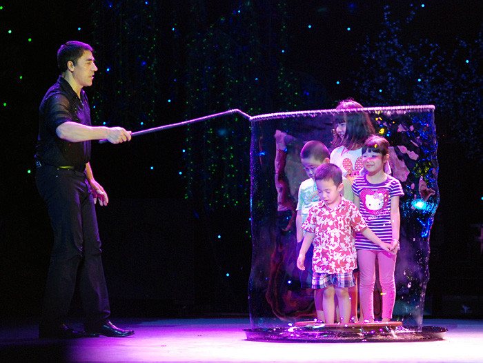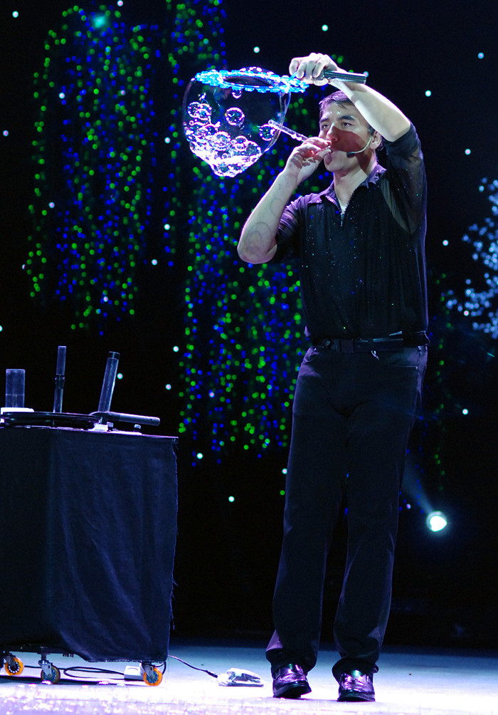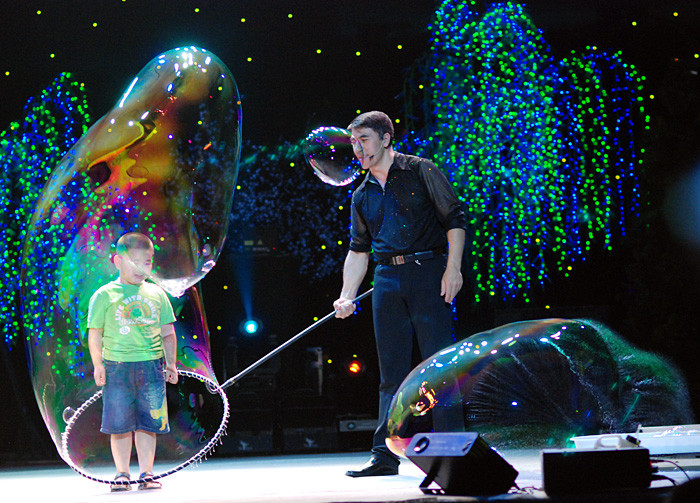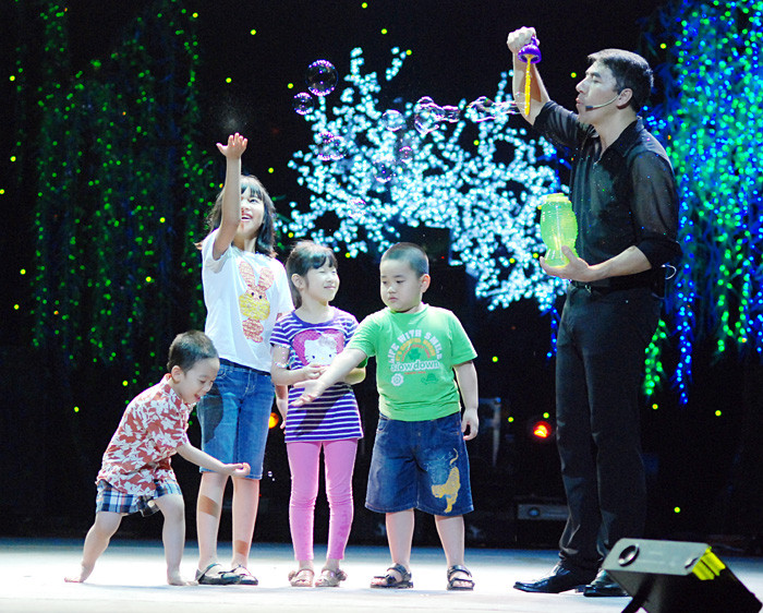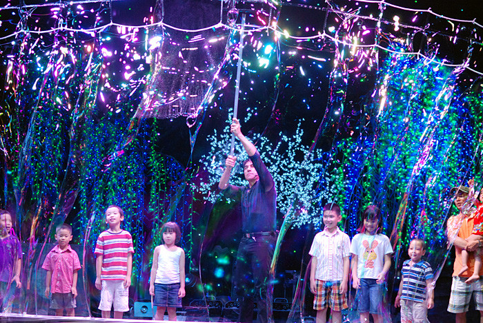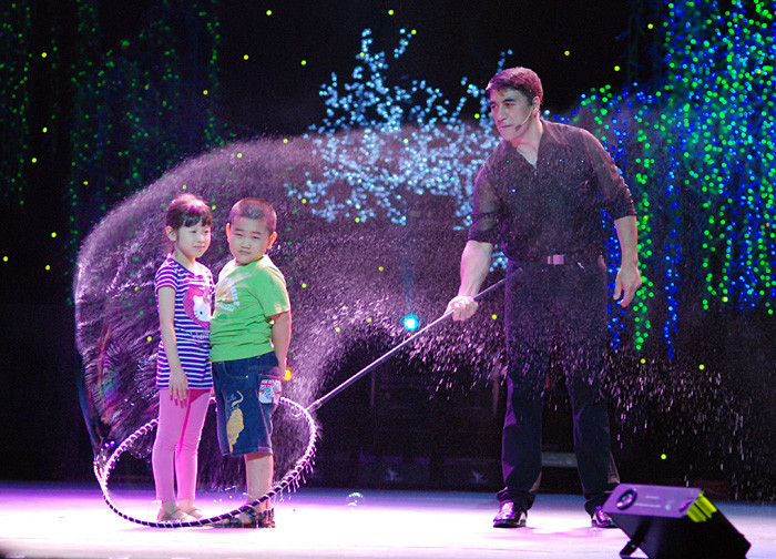 (GDVN) - Với muôn màu sắc bong bóng với đủ hình thù lạ mắt và đèn lade, “Vua bong bóng” Fan Yang đã làm cho khán giả Việt như lạc vào sứ sở thần tiên trong đêm biểu diễn 30/5 tại Cung Văn hóa Hữu Nghị, Hà Nội. Là người từng đạt 17 kỷ lục Guiness thế giới về biểu diễn bong bóng xà phòng, Fan Yang là người Canada gốc Việt được đánh giá là thiên tài về nghệ thuật thổi bong bóng.