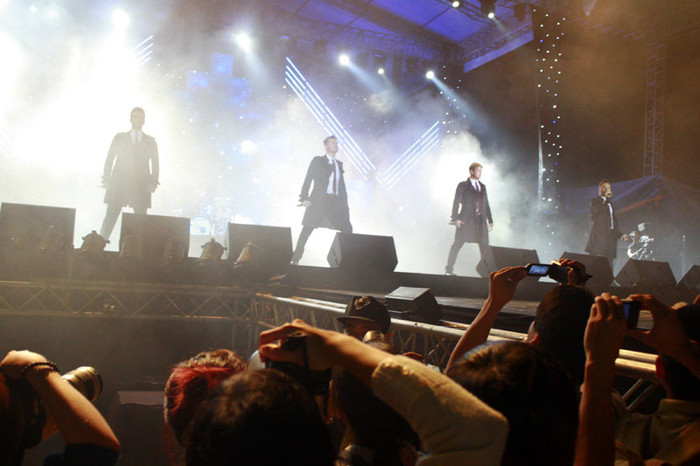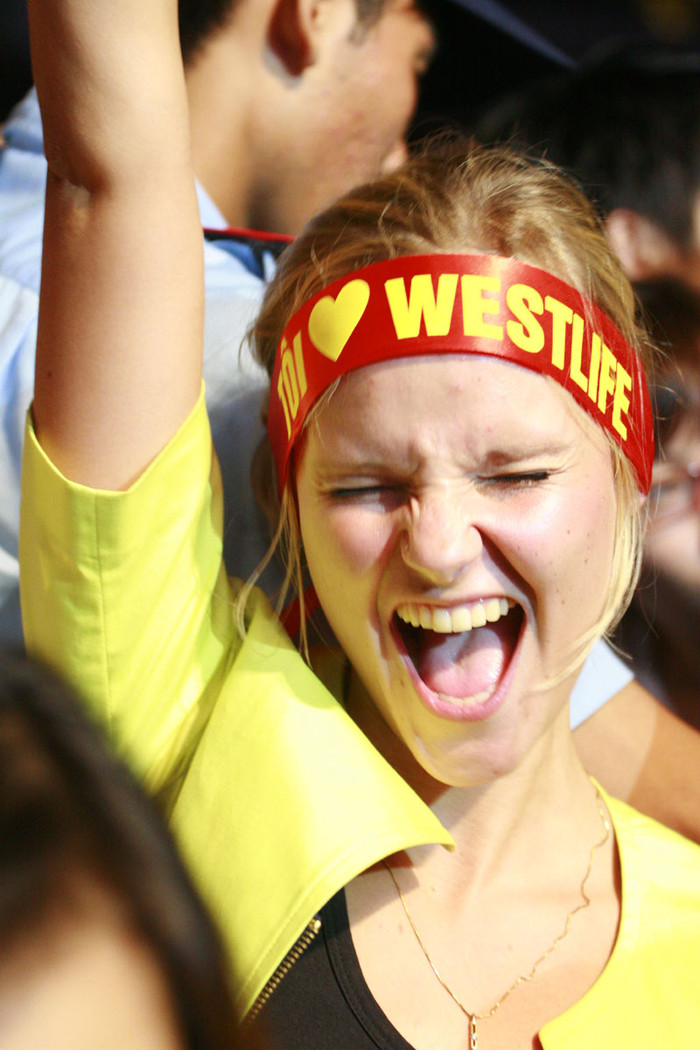 | Lực lượng an ninh và cảnh sát cơ động đã phải liên tục nhắc nhở lượng fan của Westlife để tránh tình trạng xô đẩy |