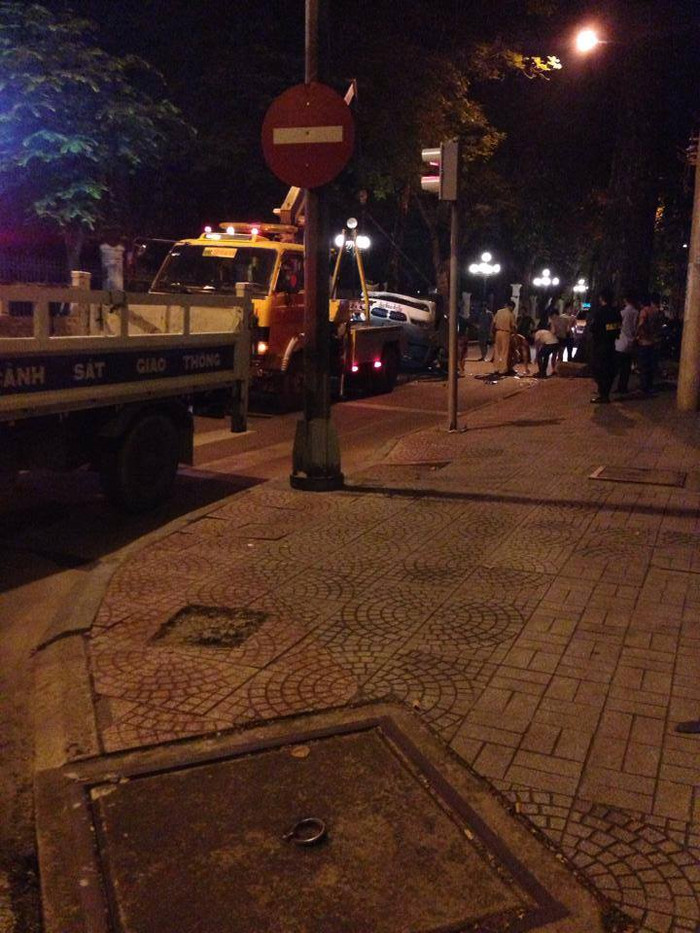 | Chiếc BMW được siêu mẫu Hoàng Yến cầm lái đâm vào một gốc cây trên đường Nam Kì Khởi Nghĩa |