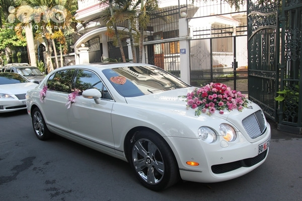 | Dàn xe cưới được chuẩn bị sẵn sàng cho giờ đi đón dâu ở nhà chú rể Đức Hải. |