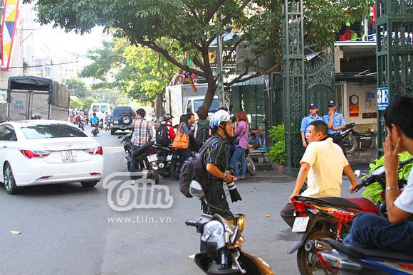 | Phóng viên tác nghiệp phía bên ngoài nhà chú rể. |