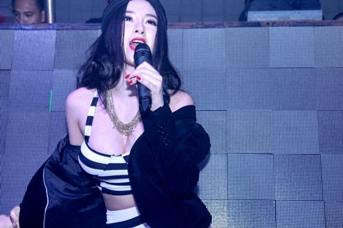 | Trước đó, vào tối 13/7, "nữ hoàng scandal" Angela Phương Trinh khiến khán giả trở nên phấn khích bởi những động tác trình diễn sexy và trang phục... không thể kiệm vải hơn khi tham gia trình diễn tại đêm khai trương của một quán bar khá lớn tại quận 1 (TP.HCM). |