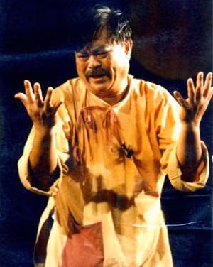 | Khán giả yêu sân khấu không thể quên hình ảnh Trương Ba trong vở Hồn Trương Ba, da hàng thịt do NSND Trọng Khôi thủ vai. |