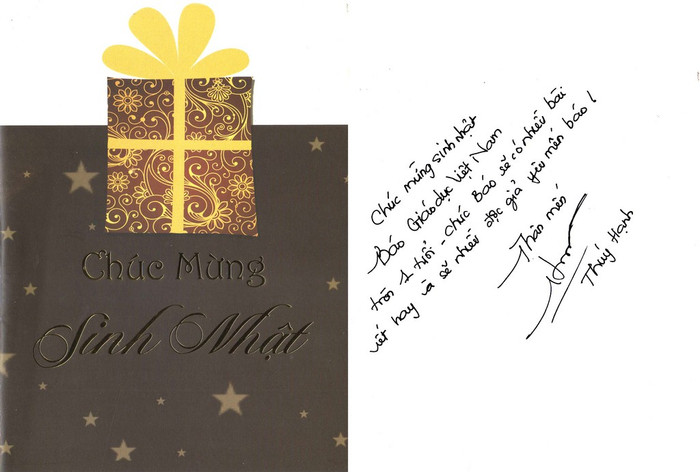 Xem Mr Đàm, Thúy Hạnh viết thiệp chúc mừng Giáo dục Việt Nam