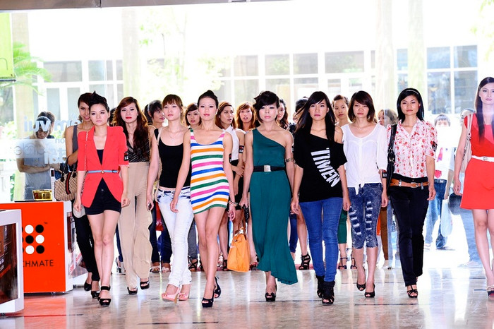 | Xuân Lan trình diễn catwalk khiến hàng trăm thí sinh không khỏi trầm trồ. |