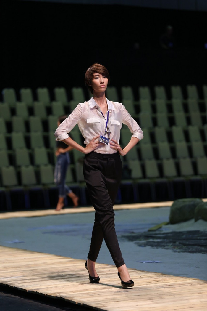 | Sau khi sinh con, Xuân Lan đã mau chóng lấy lại được vóc dáng của mình, chị vẫn thể hiện được đẳng cấp của một siêu mẫu trong từng sải chân. |