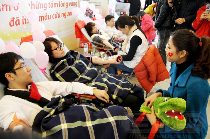 | Tiếp đó, hai người đẹp đã đi thăm và động viên các cặp tình nhân trẻ khác đang hiến máu. |