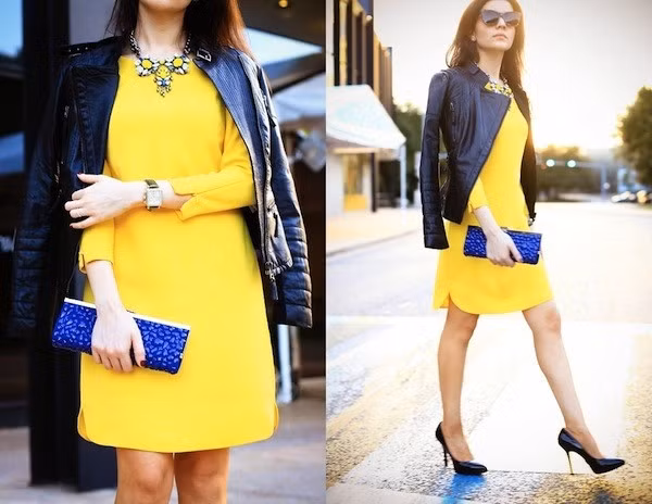 | Bạn có thể kết hợp cùng phụ kiện ấn tượng như một chiếc vòng cổ to bản để nhấn nhá thêm cho chiếc váy kiểu dáng đơn giản này. |
