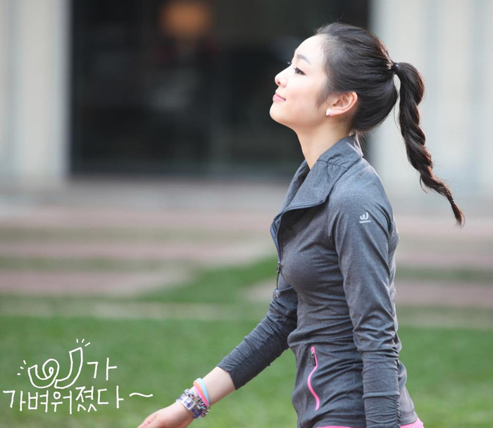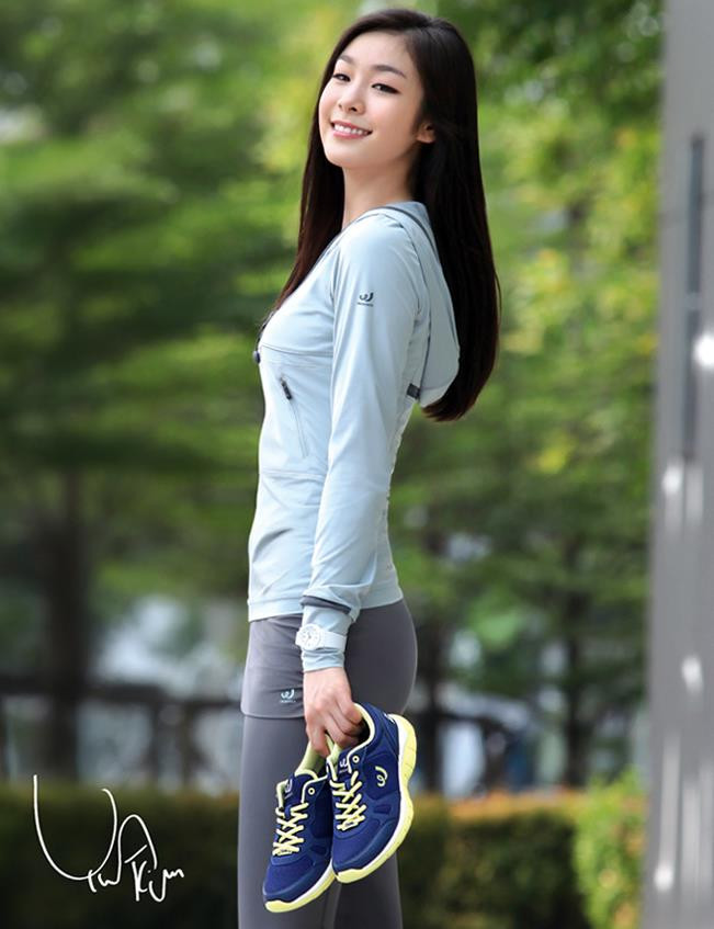 | Kim Yuna đầy trẻ trung và xinh tươi trong trang phục thể thao và xách trên tay đôi giày thể thao Prospecs |