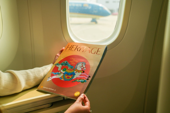 Sắc xuân hiện hữu trên từng trang Tạp chí Heritage, nơi hành khách có thể khám phá những câu chuyện văn hóa, du lịch và phong tục ngày Tết Việt Nam, góp phần làm phong phú thêm trải nghiệm bay trong những ngày đầu năm mới.