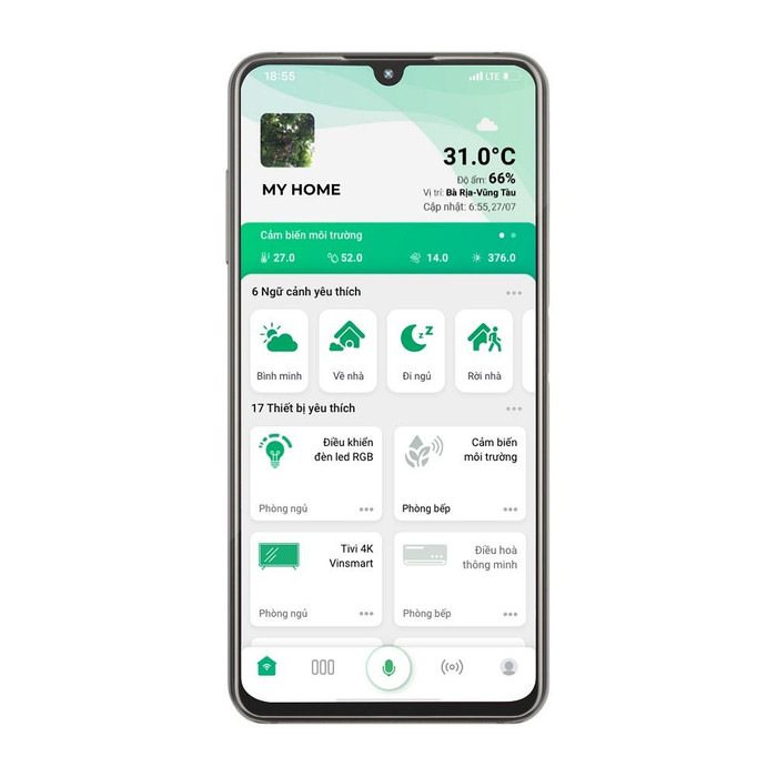 Giải pháp nhà thông minh Vsmart cho phép chủ nhân điều khiển bật, tắt hệ thống đèn điện, điều hòa, tivi, bình nóng lạnh, rèm cửa… bằng smartphone và giọng nói.