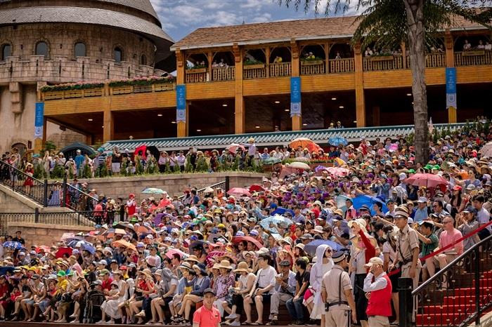 Khuôn viên với sức chứa 3000 người được lấp kín toàn bộ chỗ, thậm chí, nhiều du khách phải đứng tràn sang hai cánh sân khấu để theo dõi trọn vẹn tất cả các màn trình diễn…..