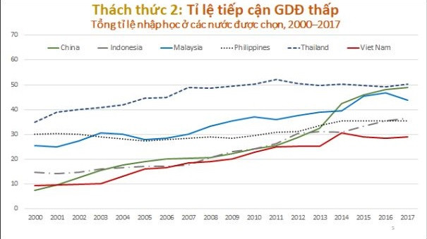 Khi đánh giá về những thách thức, World Bank vẫn cho rằng Việt Nam đã làm rất tốt ở bậc giáo dục phổ thông, tuy nhiên cần chú trọng nâng cao chất lượng giáo dục đại học.