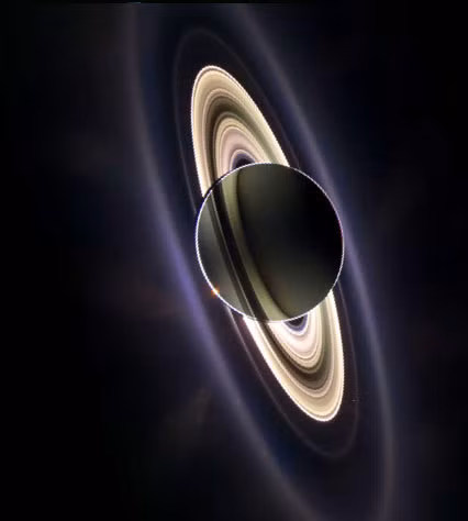 | Bóng vệ tinh Titan làm tối một phần vành đai của Sao Thổ |