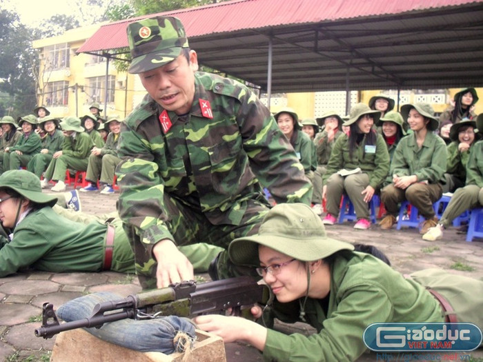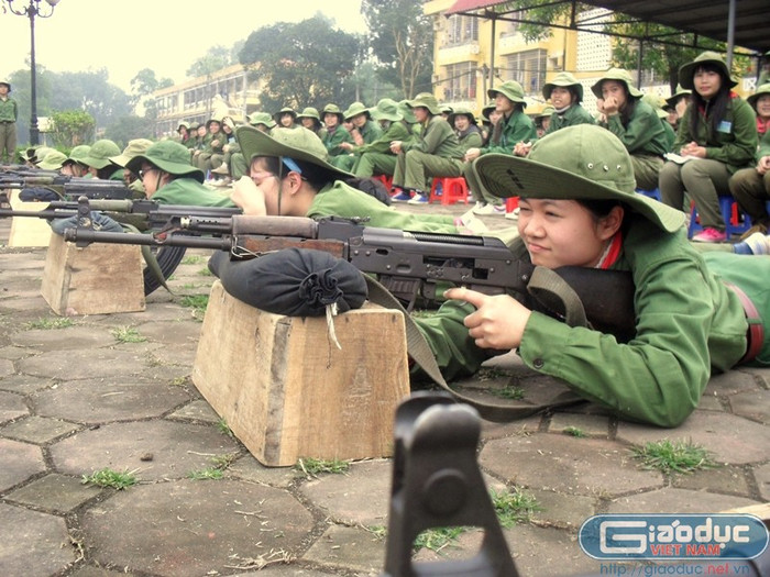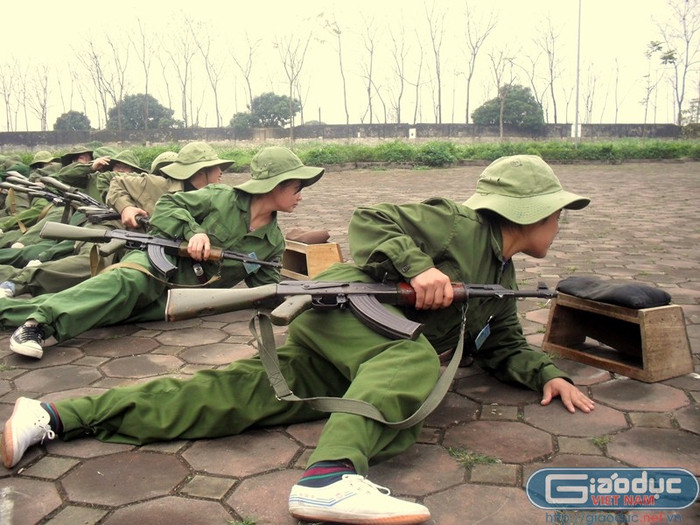 | Bài tập luyện trong bộ môn bắn súng là một trong số rất nhiều nội dung mà sinh viên phải học trong chương trình giáo dục quốc phòng. |