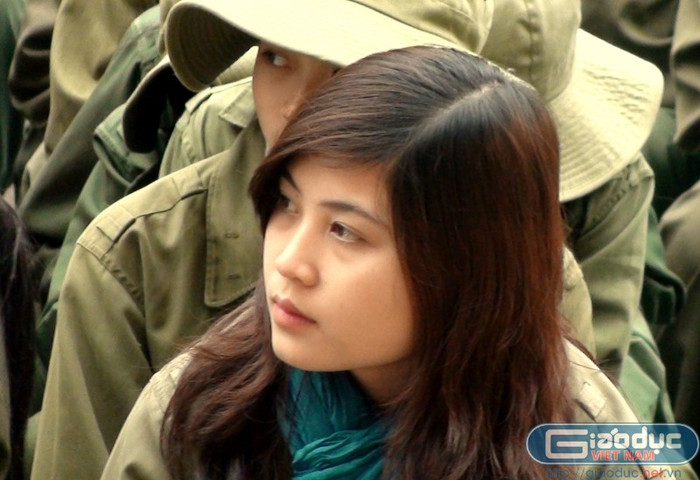 | Trong bộ quân phục màu xanh lá khỏe khoắn, những nữ sinh viên đang theo học bộ môn giáo dục quốc phòng tại Trung tâm Giáo dục Quốc phòng Hà Nội 1 – trường ĐH Sư phạm Thể dục Thể thao Hà Nội giống như các chị thanh niên xung phong trong cuộc kháng chiến chống Mỹ cứu nước. |