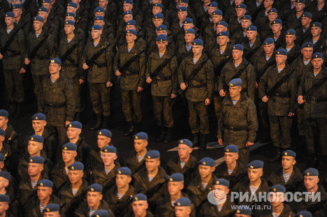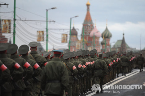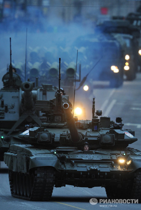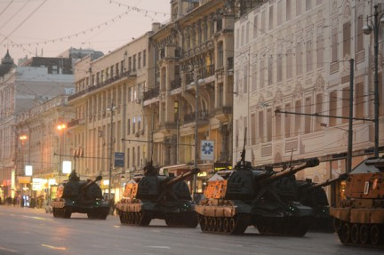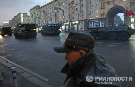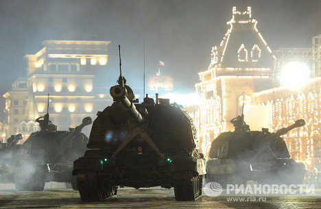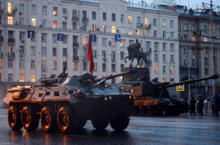(GDVN) - 100 thiết bị quân sự tham gia lễ diễu binh mừng kỷ niệm 67 năm ngày chiến thắng phát xít (9/5/1945-9/5/2012) đã đổ về trên quảng trường Đỏ ở thủ đô Moscow tham gia diễn tập trong các đêm từ 30/4-6/5.