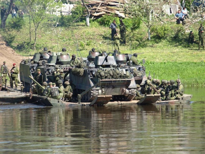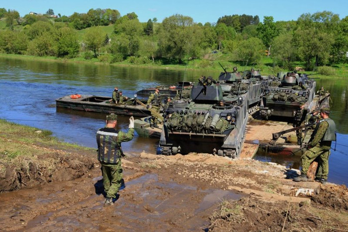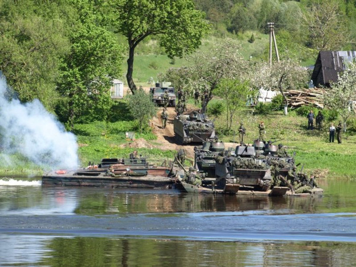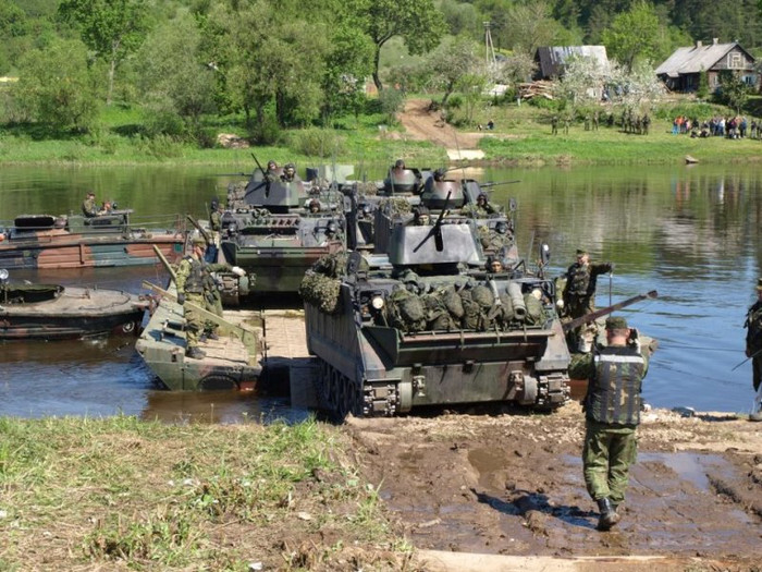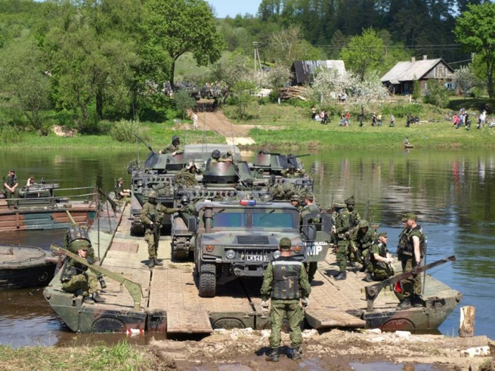 Xem xe bọc thép Cộng hòa Lithuania diễn tập vượt sông