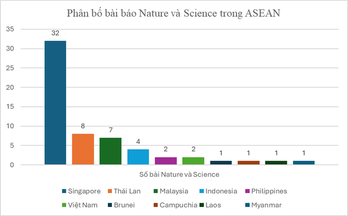 Có thể mô phỏng phân bố bài báo Nature và Science trong ASEAN trong nửa đầu năm 2025 như dưới đây để tăng cường trực quan trong đối sánh: