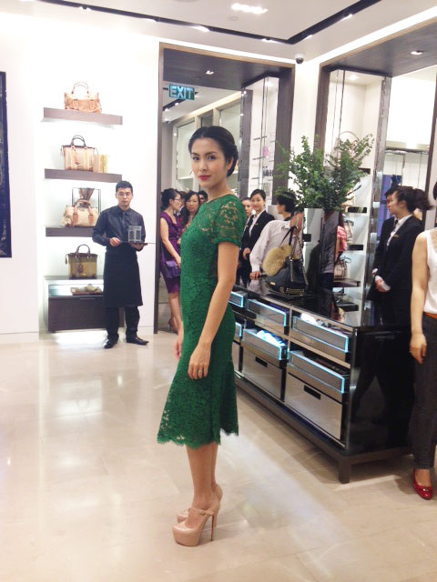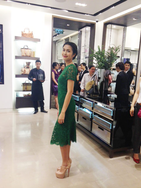Cô xuất hiện tươi tắn trong bộ đầm ren xanh
